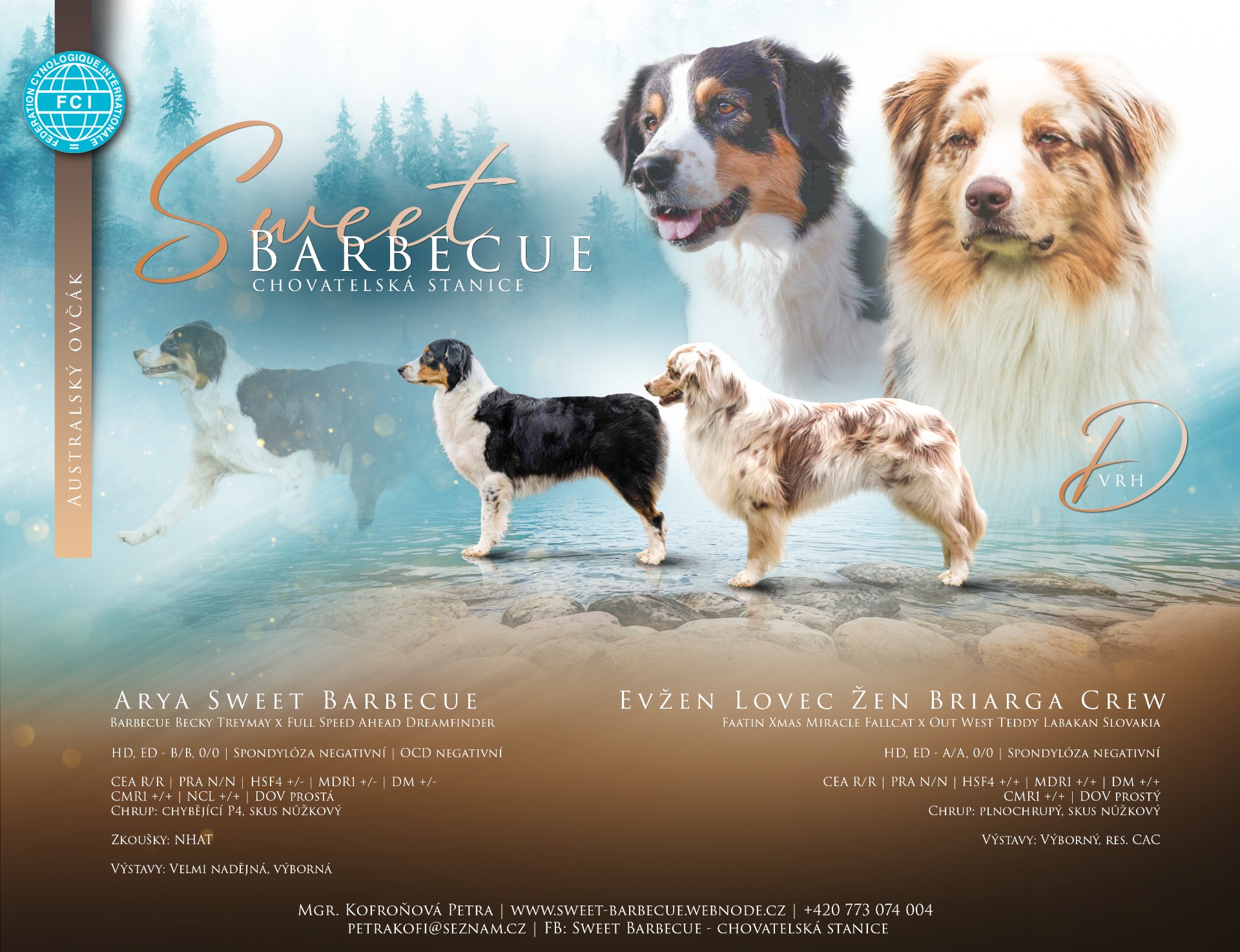 Maminkou našeho vrhu D se stane námi odchovaná Arya Sweet Barbecue. Arya se může pyšnit klidnější povahou a sportovní postavou lehčího typu. Arya velmi ráda pracuje na cvičáku. Společně se věnujeme základní poslušnosti, lehce agility a navštěvujeme lekce pasení ovcí, kde Arya úspěšně složila zkoušku NHAT. V poslušnosti se připravujeme na základní zkoušky. Co je však důležitější, Arya je neskutečný mazel :)